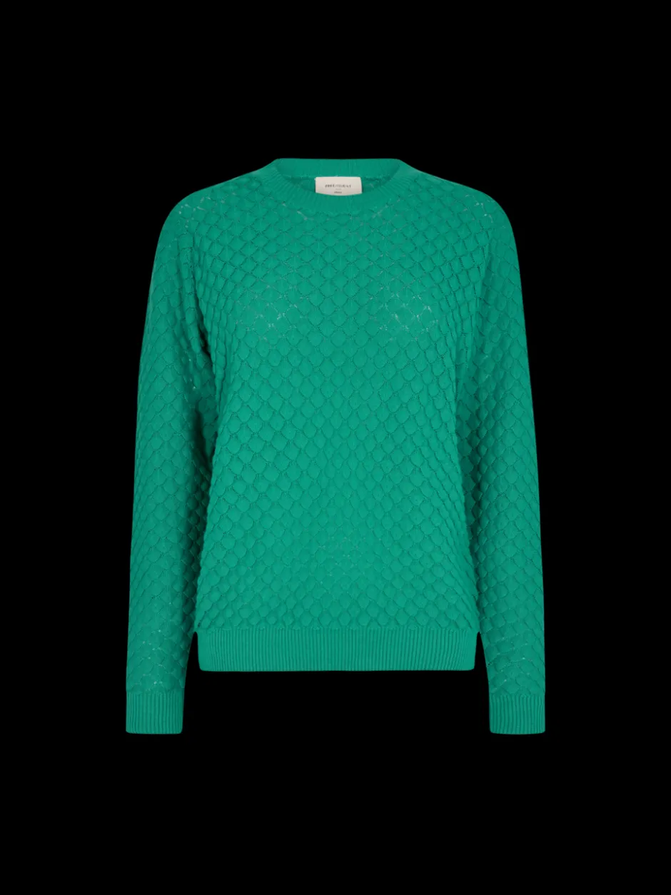 Pehmeä puuvillaneule pyöreällä pääntiellä. Neuleessa on pitkät hihat joidenka suissa on joustavat resorit.