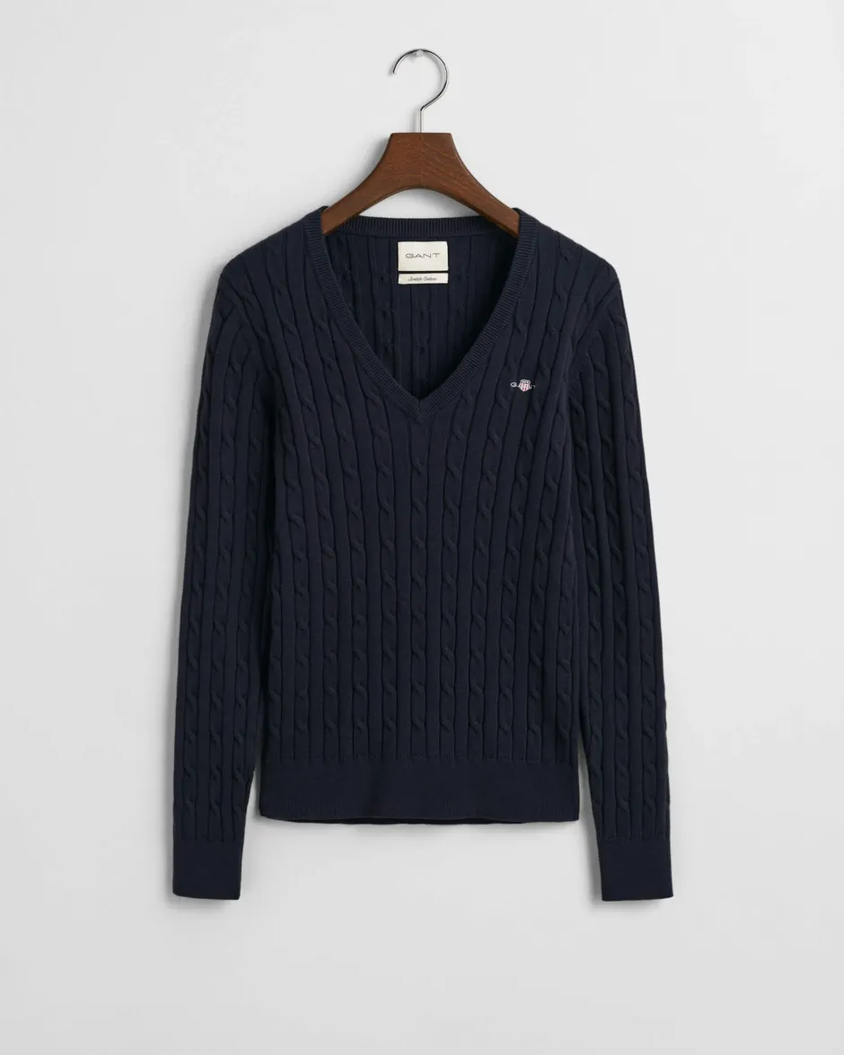 Kapea mitoitus V‑pääntie Resorit hihansuissa ja helmassa Rinnassa kirjailtu GANT-kuvio