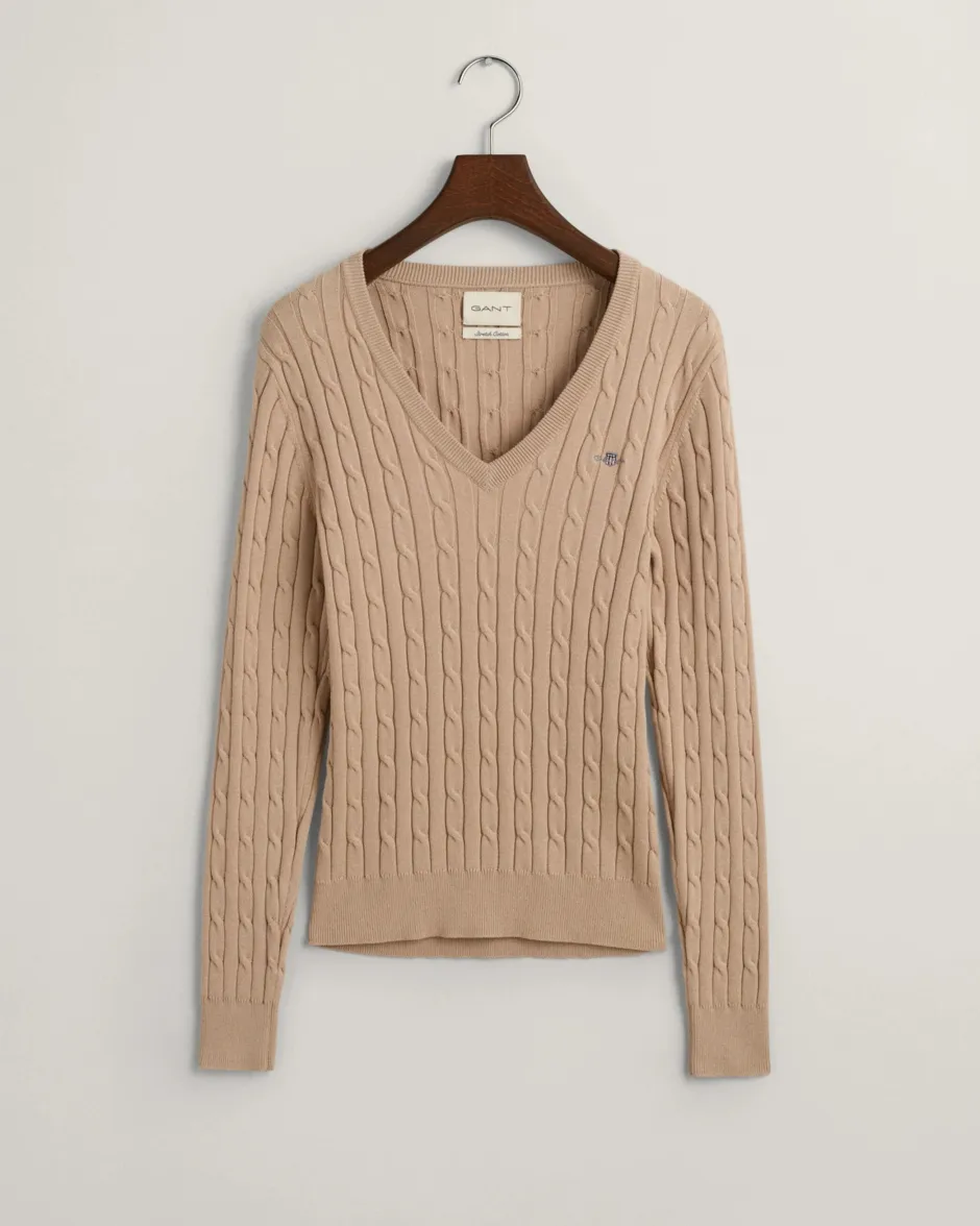Kapea mitoitus V‑pääntie Resorit hihansuissa ja helmassa Rinnassa kirjailtu GANT-kuvio