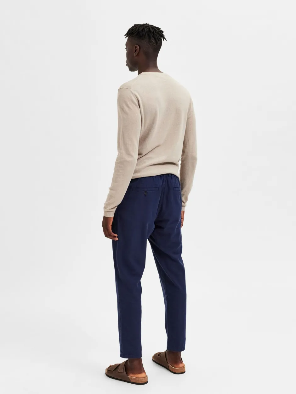 Mikä huutaa ”kevättä” enemmän kuin pellava? Nämä puuvilla-pellavasekoitehousut ovat täydellinen yhdistelmä mukavuutta ja kestävyyttä. Niissä on keskivyötärökorotus kiristysnyörillä, joka ei ole vain säädettävissä, vaan antaa myös rentoa tunnelmaa. Suosittelemme muotoilemaan ne t-paidalla, napittamattomalla päällyspaidalla ja nahkaisilla kalastajasandaaleilla. – Keskivyötäröllä laskettu nousu – Vetoketjullinen sepalus nappeilla – Säädettävä kiristysnauhakiinnitys – Vyölenkit – Viistot sivutaskut – Hitsatut takataskut napeilla – Kapeneva jalka – Rento istuvuus