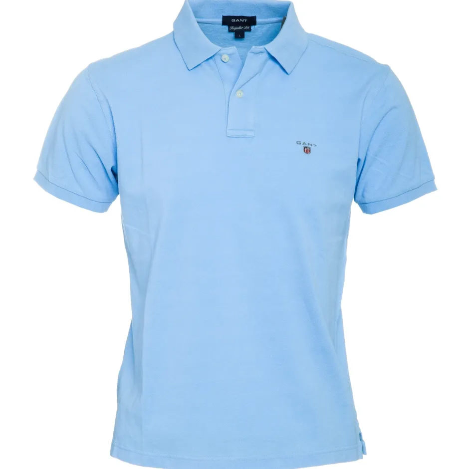 Gant miesten lyhythihainen pikeepaita. Resorikaulukset, edessä lyhyt nappilista ja helmassa lyhyet halkiot sivuilla.