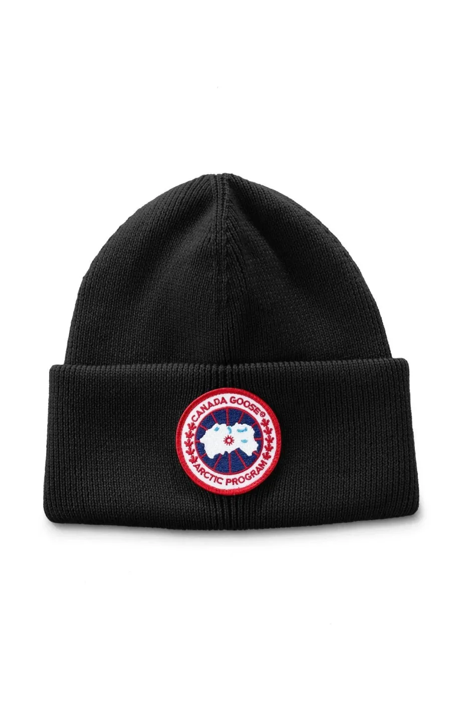 Canada Goosen pehmeä, kaksinkertainen neulepipo, Edessä päälleommeltu CG-merkki. Valmistusmaa Italia.