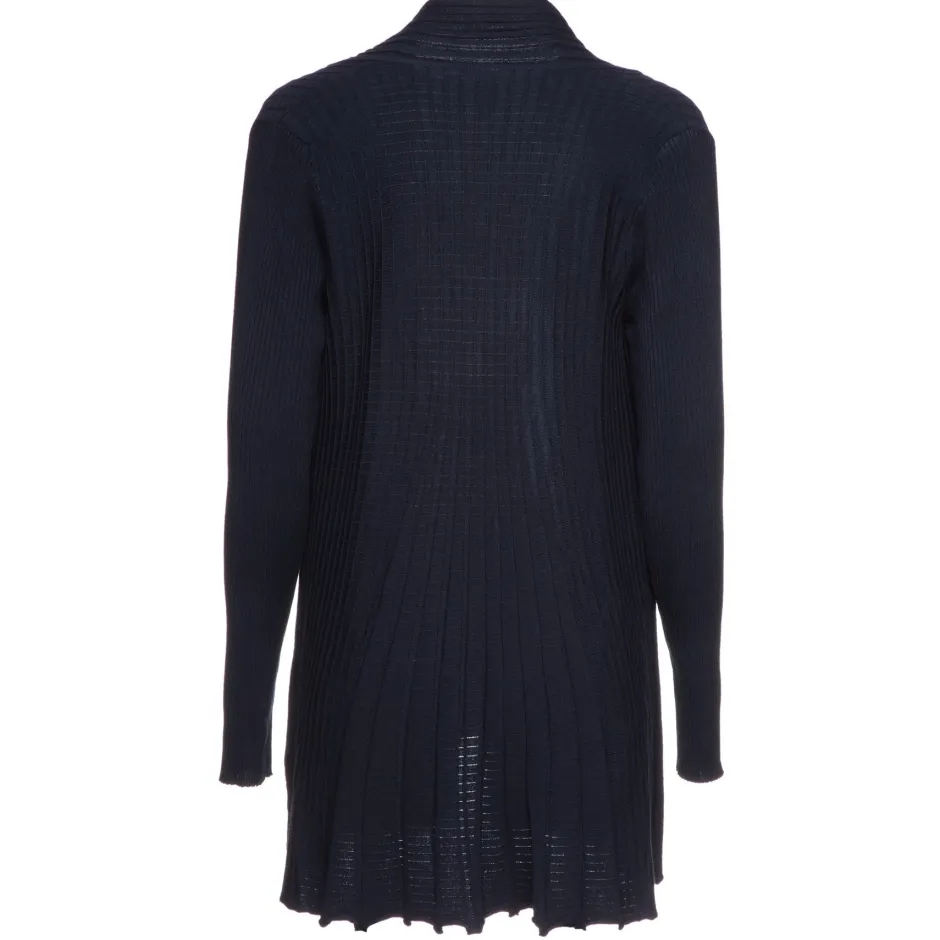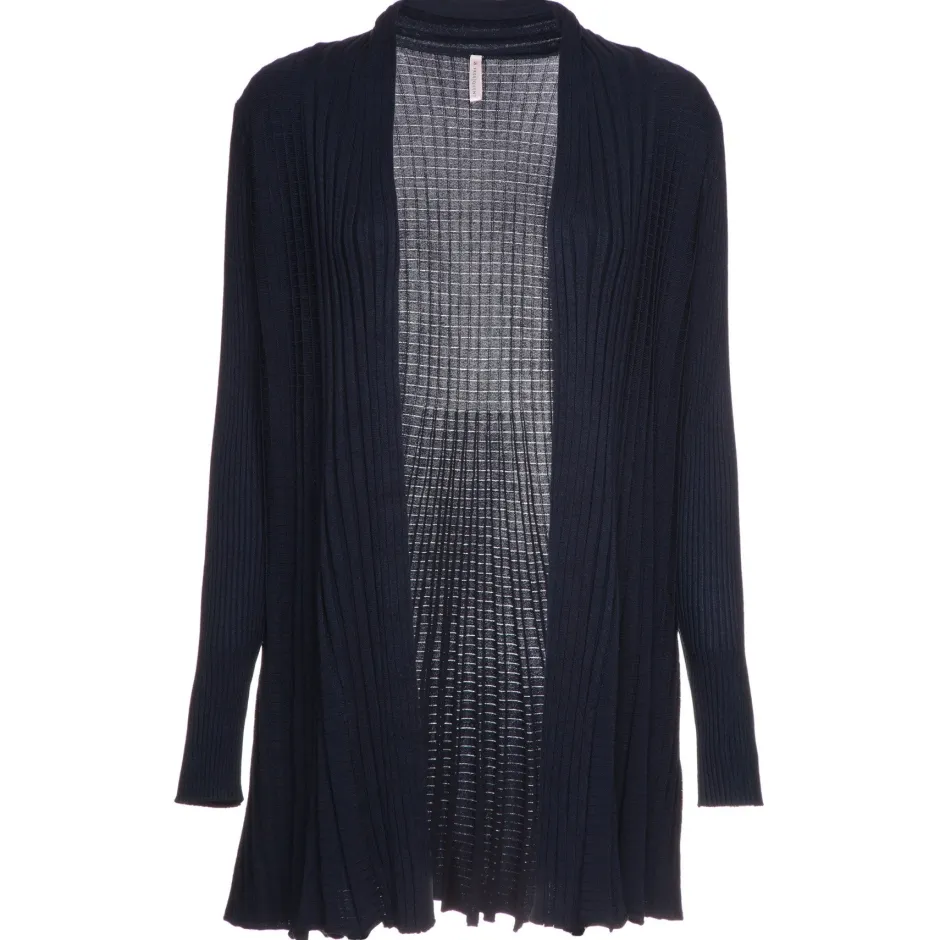 Naisten ohut, pitkä neuletakki. Kaunista koristeneulosta, edessä ei kiinnityksiä. Koossa M pituus n.83 cm.