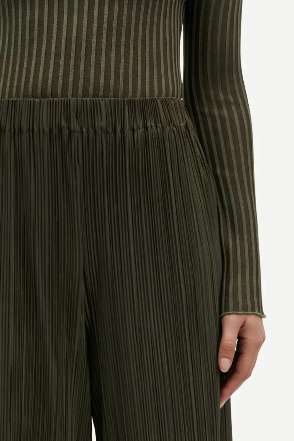 Rennot leveälahkeiset housut joustavalla vyötäröllä.