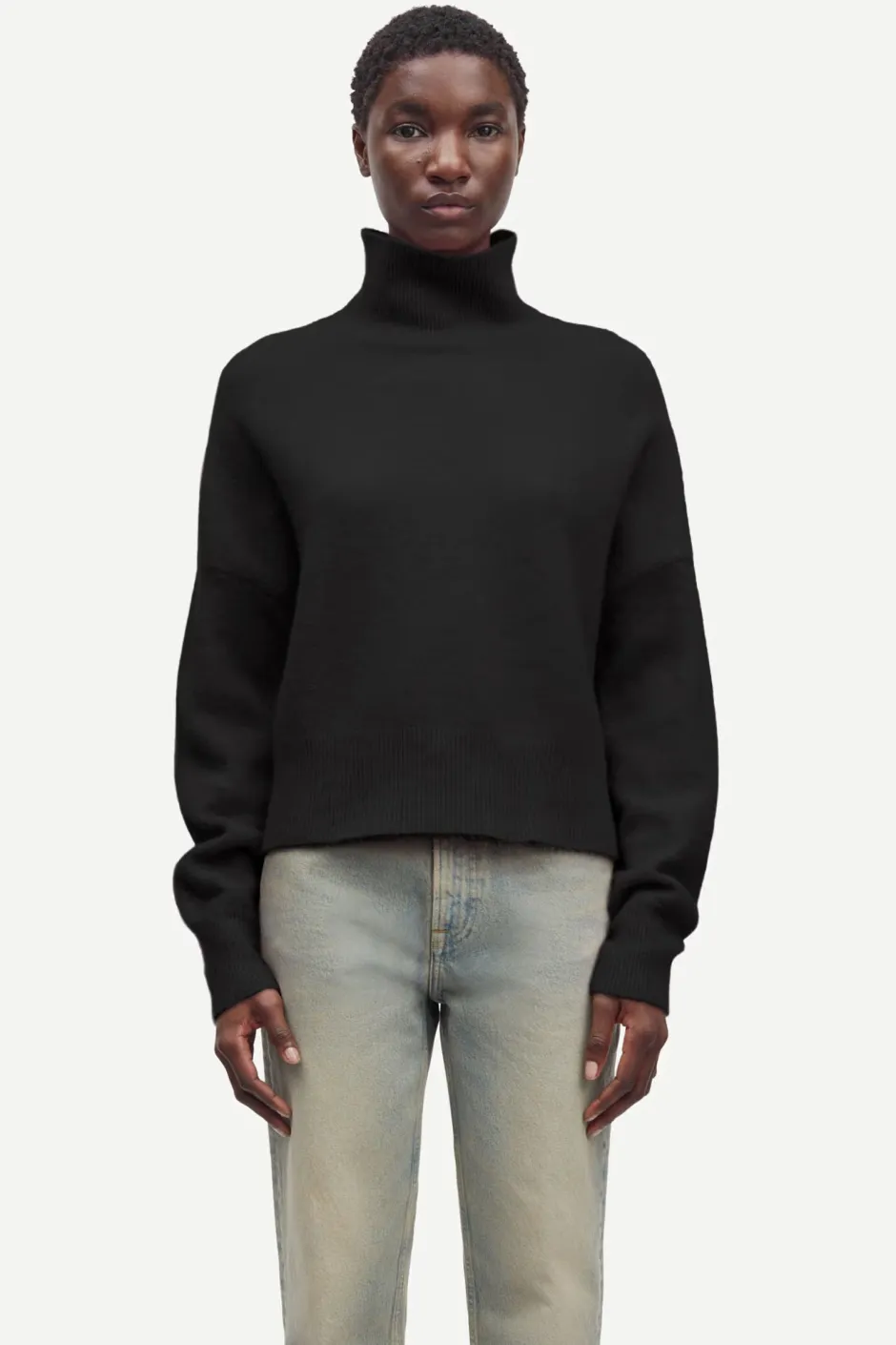 Naisten ihanan pehmeä ja hieman pörröinen neulepusero, jossa puolikorkea ns.kilpikonnakaulus . Helmassa ja hihansuussa resorineulos. Mallia on helppo yhdistellä hameiden ja housujen kanssa ja sen voi pukea vaikka mekon päälle.