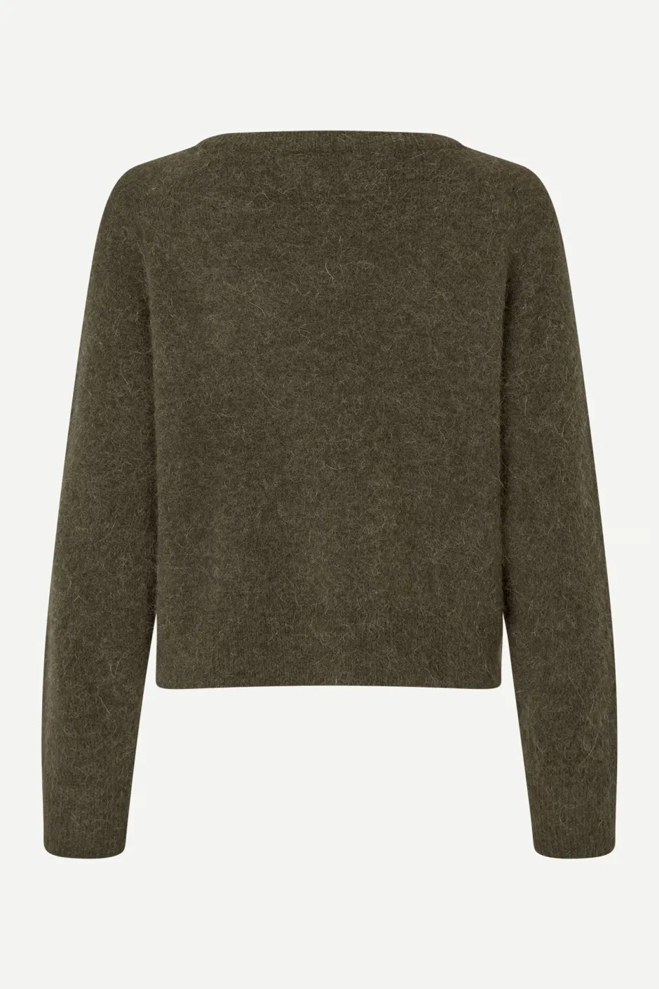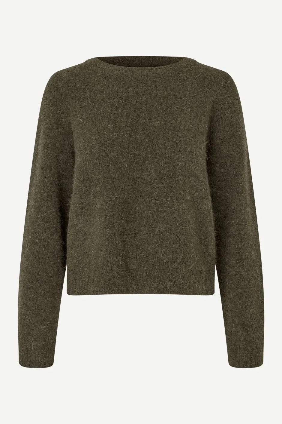 Samsoe&Samsoen pörröpintainen villaneule väljää mitoitusta. O-pääntie, raglanhihat, helmassa löysä resori.