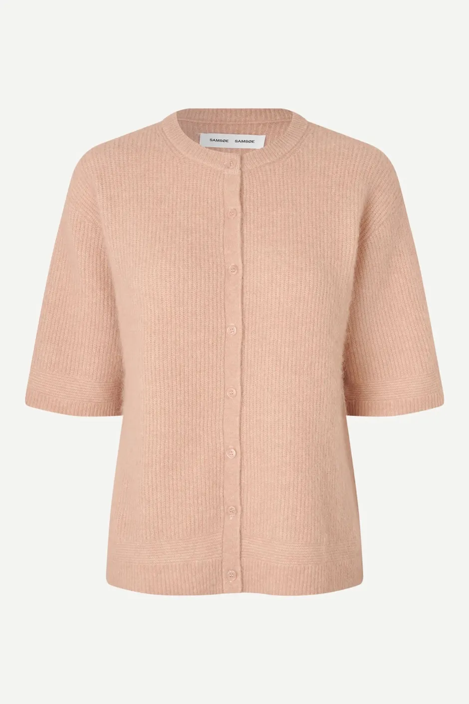 Lyhythihainen neuletakki, jossa normaali istuvuus ja madalletut olkapäät. Napitus edessä. Ribattu kaulus, hihansuut ja helma. Pyöreä pääntie. Päämateriaali on valmistettu joustavasta sekoituksesta, jossa on alpakanvillaa ja villaa. Tämä tuote on RWS-sertifioitu. RWS valvoo ja sertifioi eläinten hyvinvointia ja maankäyttöä koskevia käytäntöjä villakuidun tuotannossa ja seuraa sertifioitua materiaalia tilalta lopputuotteeseen.