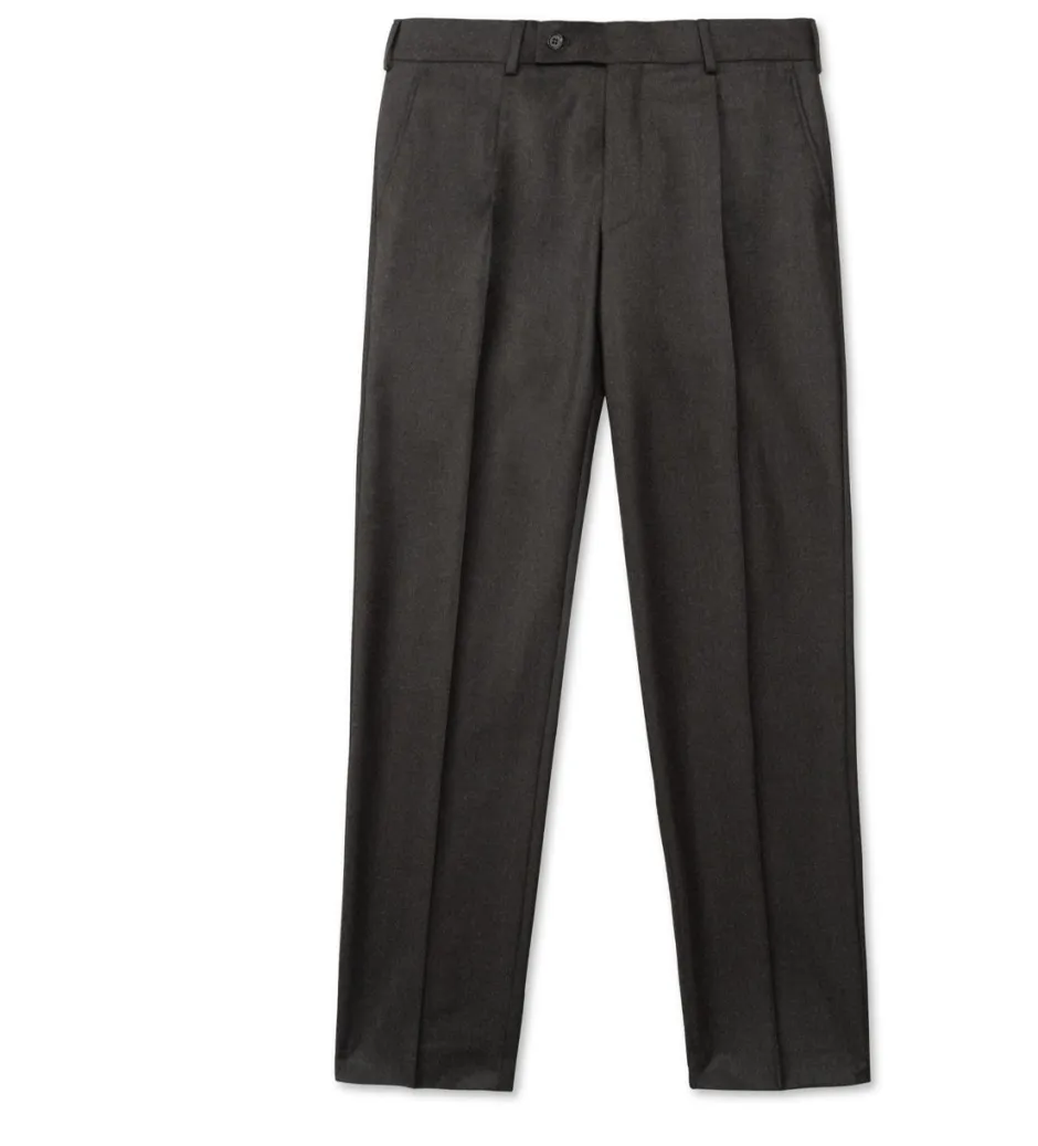 Tyylikkäät ja ajattomat flanellihousut. Täydellinen jokapäiväiseen käyttöön puvun osaksi tai irtotakin kanssa. Maagisen pehmeä ja hengittävä villaflanelli on Vitale Barberis Canonicon käsialaa. Vyötärökaitaleen etuosassa vekit lisäävät tilaa ja mukavuutta.