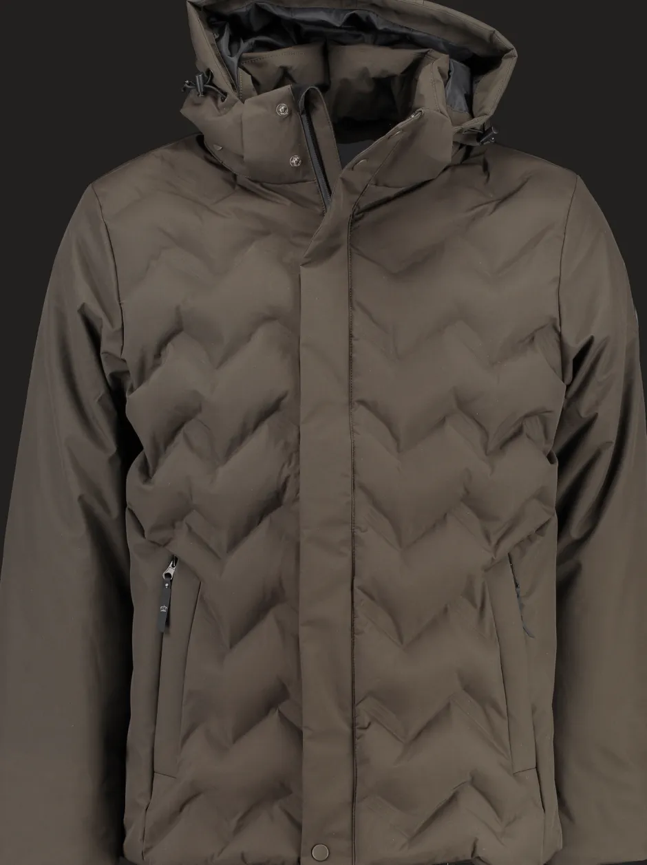 Tyylikkyyttä ja käytännöllisyyttä yhdistävä miesten lantiomittainen toppatakki irrotettavalla hupulla, vetoketju kiinnityksellä ja sivutaskuilla. Keskellä oleva struktuuri luo takille erottuvan ilmeen, ja se pitää sinut lämpimänä ja tyylikkäänä kylminä päivinä.