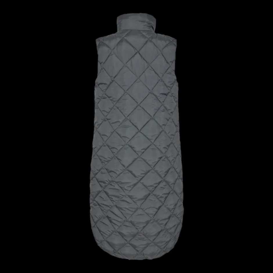 Freequentin tyylikäs, polvimittainen tikkiliivi. Edessä nappikiinnitus ja läpälliset taskut. Hihattomassa vanutäytteisessä liivissä on pyöristetty helma ja korotettu kaulus. Monikäyttöinen ja tyylikäs vaate, joka sopii asuun kuin asuun!