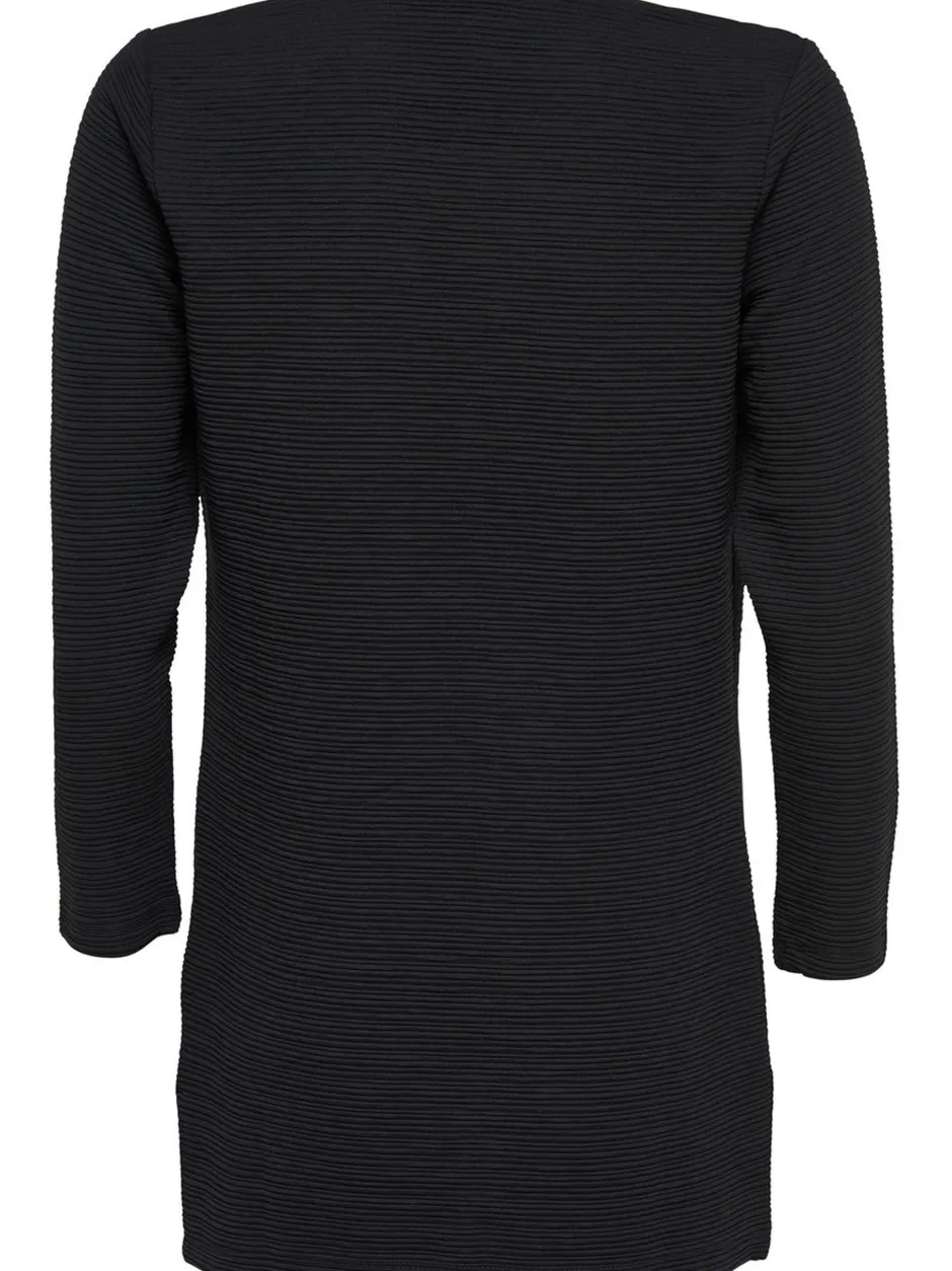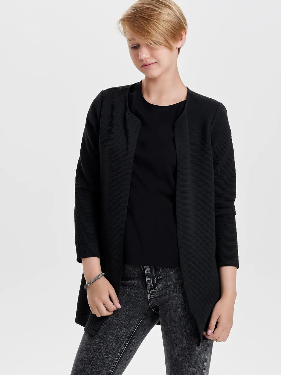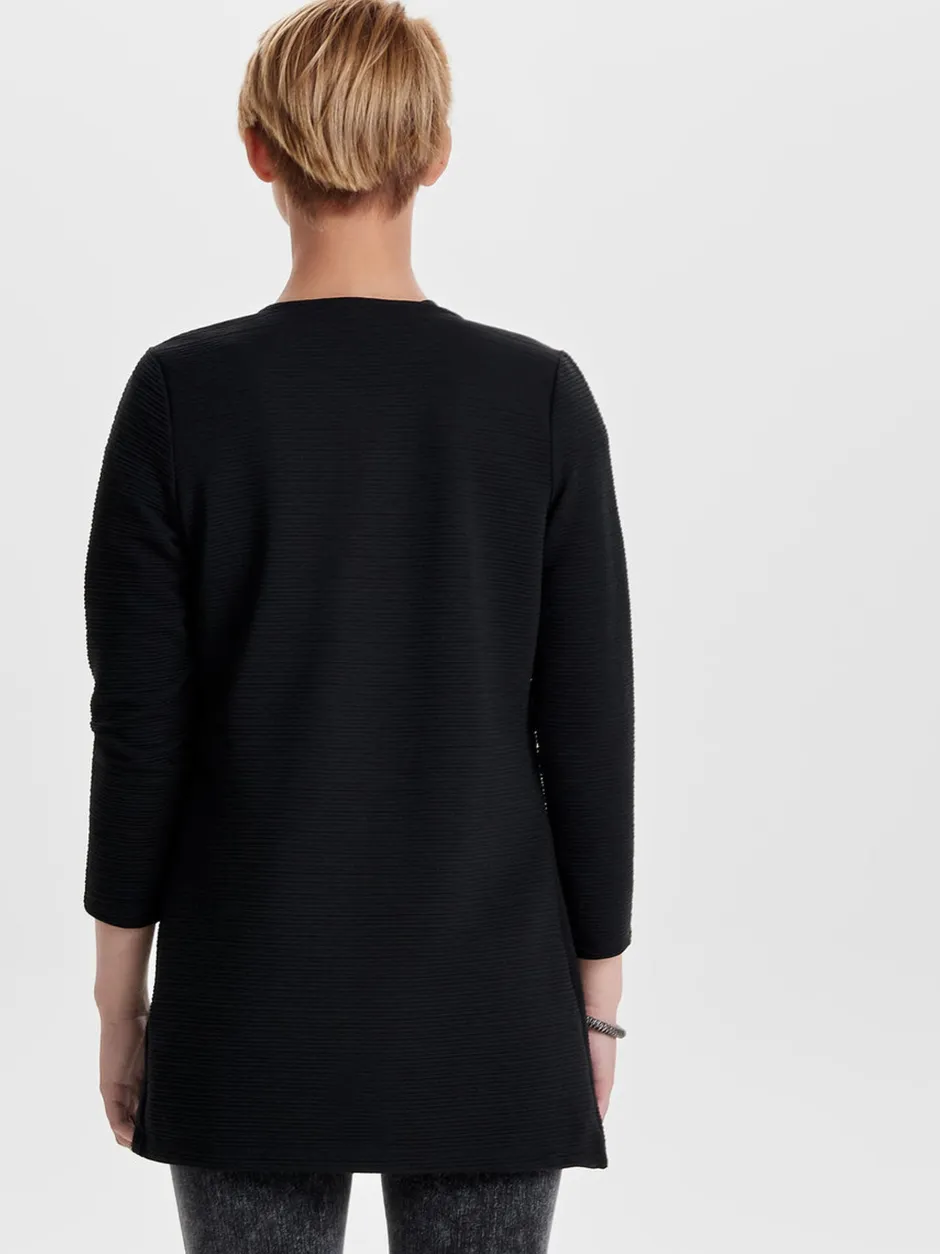 Only naisten trikootakki 7/8-hihoilla. Kankaassa raitastruktuuripinta, edestä avoin. Koossa S pituus n.72 cm.